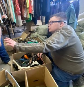 Ребята навели идеальный порядок в помещении благотворительного фонда: отсортировали огромное количество вешалок и освободили пространство, сложив все пустые коробки в угол. Теперь в помещении стало просторно и чисто.